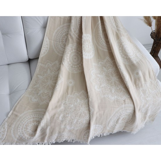Eponj Home Damask Keten Koltuk Örtüsü 170x220 cm Bej | Tekzen