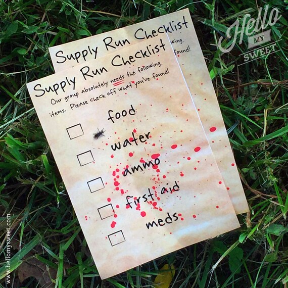 Survival Supply List Scavenger Hunt party Game INSTANT